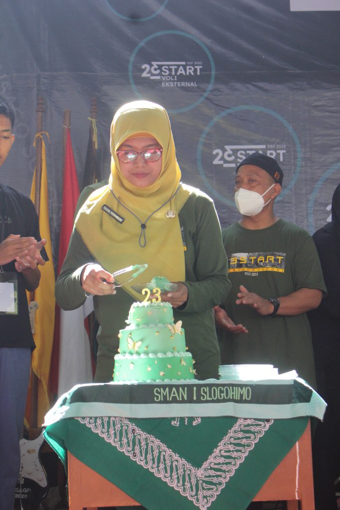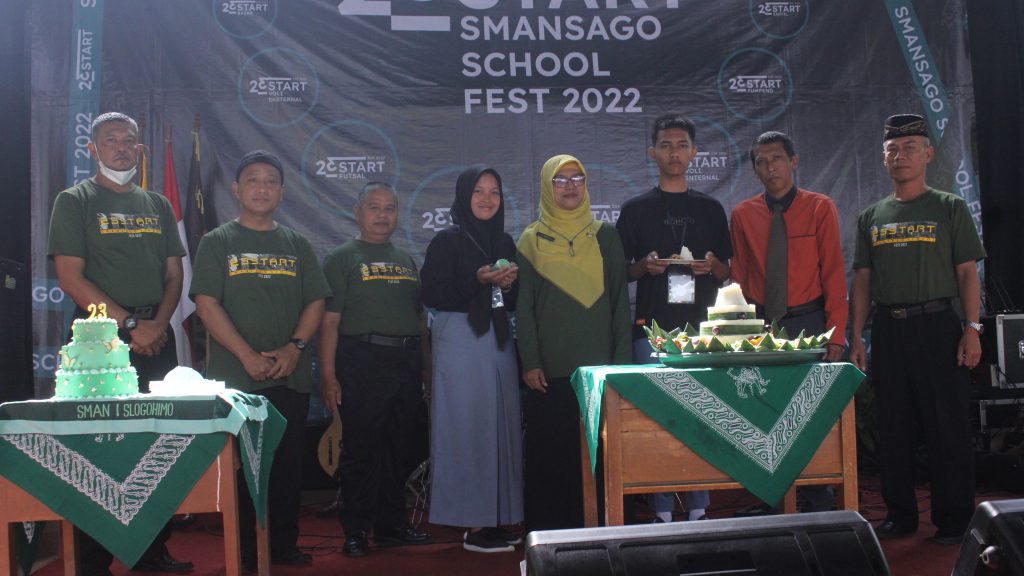 Disaksikan langsung oleh seluruh Warga SMAN 1 Slogohimo dan dihadiri oleh anggota komite, perayaan SMANSAGO SCHOOL FEST diawali dengan potong tumpeng dan potong kue oleh Kepala Sekolah kepada ketua komite Sandianto, S.H. Dalam sambutannya bapak Sandianto menyampaikan “ saya beruntung menjadi bagian dari SMAN 1 Slogohimo, sekolah yang memiliki banyak keunggulan, banyak prestasi, semoga kedepannya SMANSAGO semakin Jaya, Menginspirasi dan lebih banyak mencetak pestasi-prestasi.”