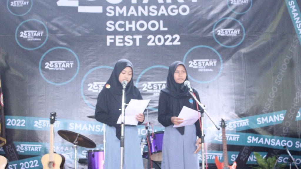 Perayaan HUT atau yang dikenal dengan SMANSAGO SCHOOL FEST digelar selama 4 hari, mulai hari senin 19 September s/d 22 September 2022. Diawali Upacara pembukaan yang dipimpin oleh ibu Kepala Sekolah Kuntari Purwaningsih, S.S kegiatan dibuka secara simbolis dengan pelepasa balon sebanyak 23 sesuai jumlah usia SMANSAGO, “diterbangkan diharapkan SMAN SAGO semakin mengudara, terbang tinggi mengantarkan siswa – siswi dalam mewujudkan mimpinya” sambutan dari Kepala Sekolah.